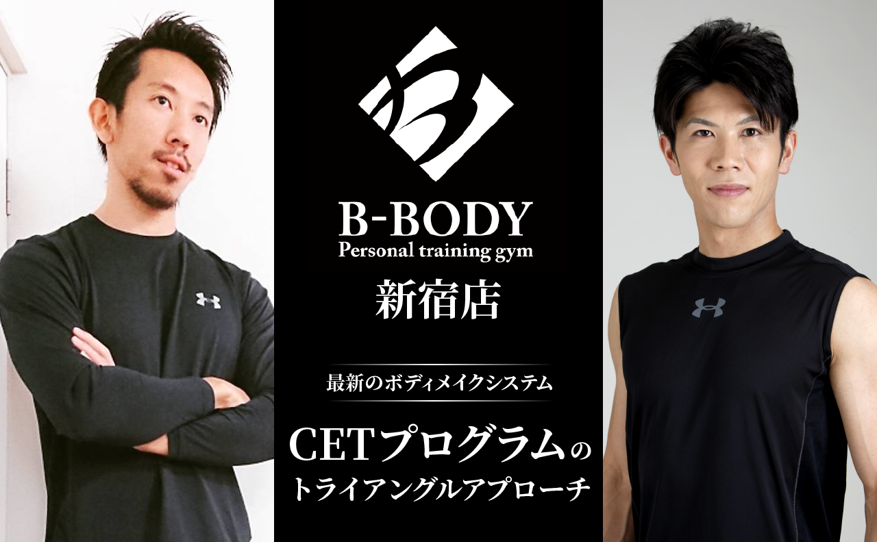 B-BODYはトータルボディメイクを専門としたパーソナルトレーニングジムです。本格的なトレーニング方法やご自分のライフスタイルと性格に合った食事方法を【CETプログラム】の中からカスタムし、あなただけに合った指導をマンツーマンでいたします。